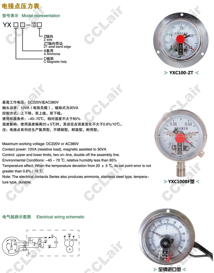 YXC100-ZT,YXC100-Z,YXCA100-ZT,YXCA100-Z,YXCA150-ZT,YXCA150-Z,電接點(diǎn)壓力表,無(wú)錫昌林