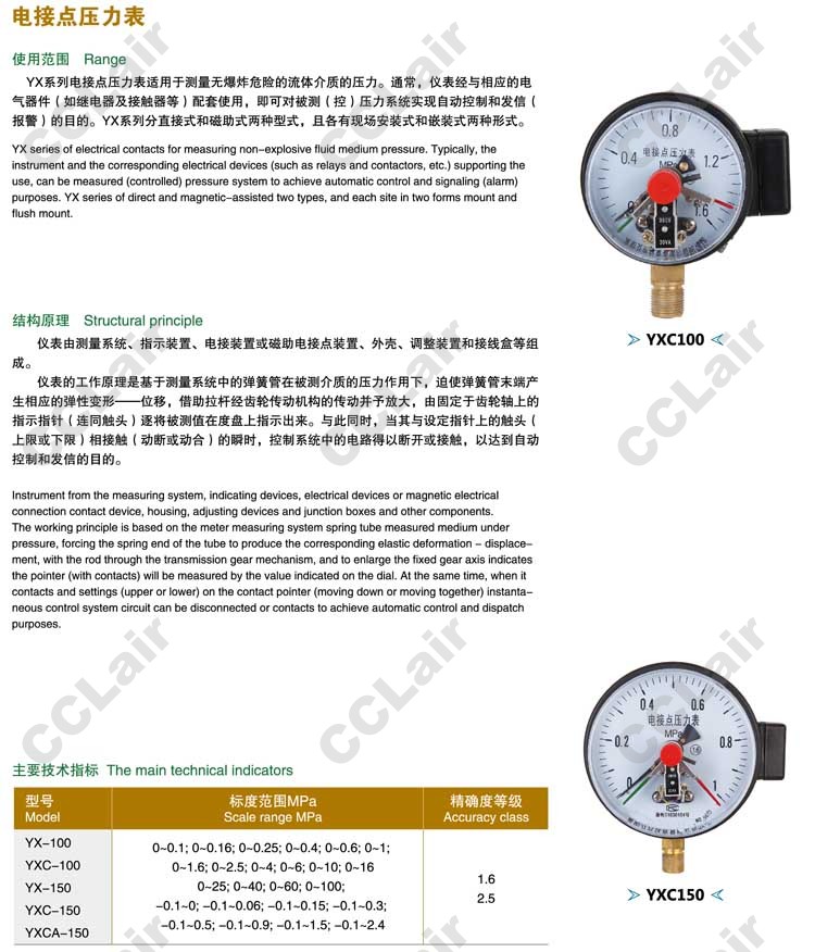 YX-100,YXC-100,YX-150,YXC-150,YXCA-150,電接點壓力表