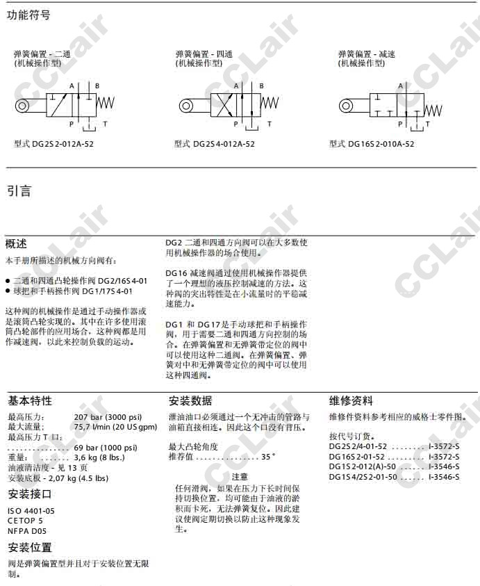 DG2S2-012A-52,DG2S4-012A-52,DG16S2-010A-52,方向控制閥,威格士-Vickers