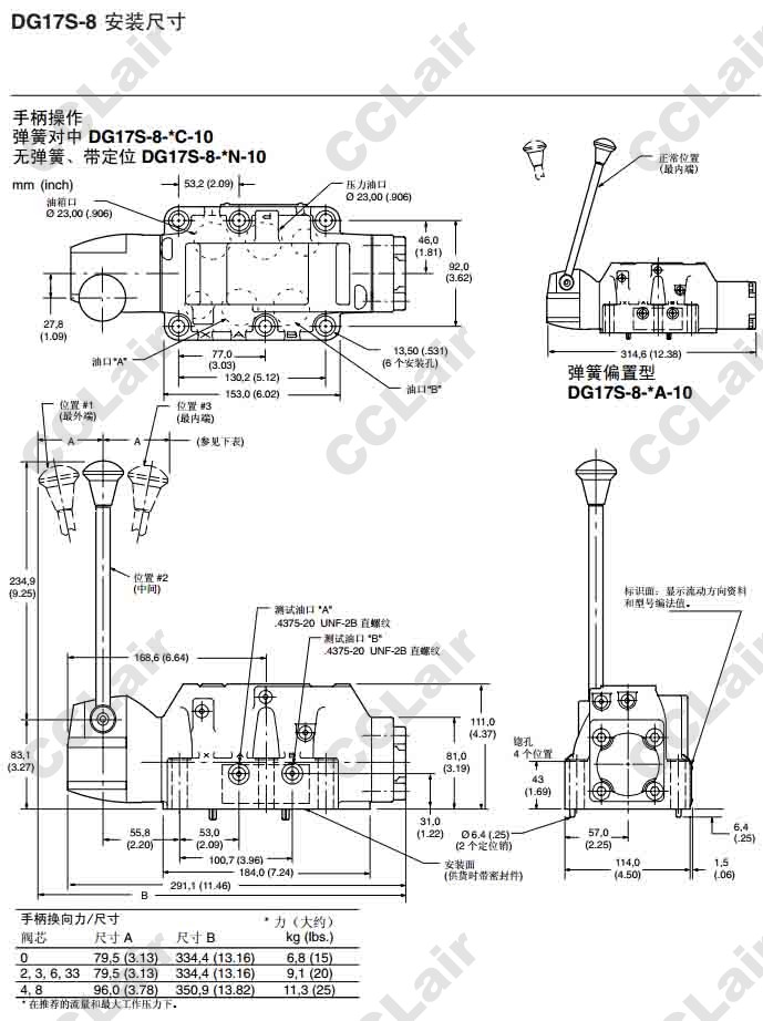 DG17S-8,DG17S-8-0C-10,DG17S-8-0A-10,DG17S-8-0N-10,DG17S-8-2C-10,威格士-Vickers,手柄操作方向控制閥