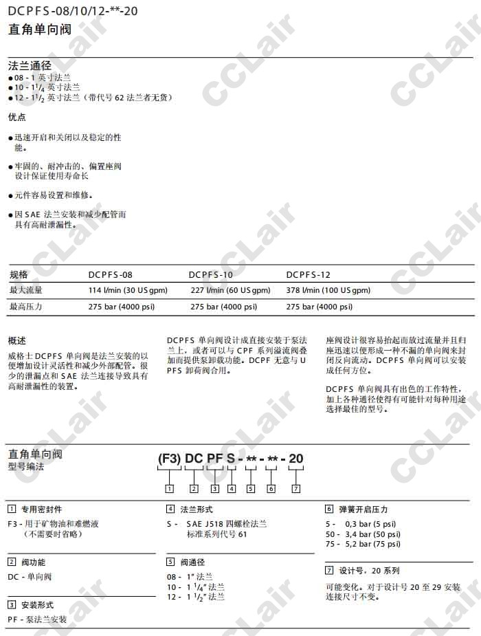DCPFS-08,DCPFS-10,DCPFS-12,DCPFS-08-5-20,DCPFS-12-75-20,威格士-Vickers,直角單向閥