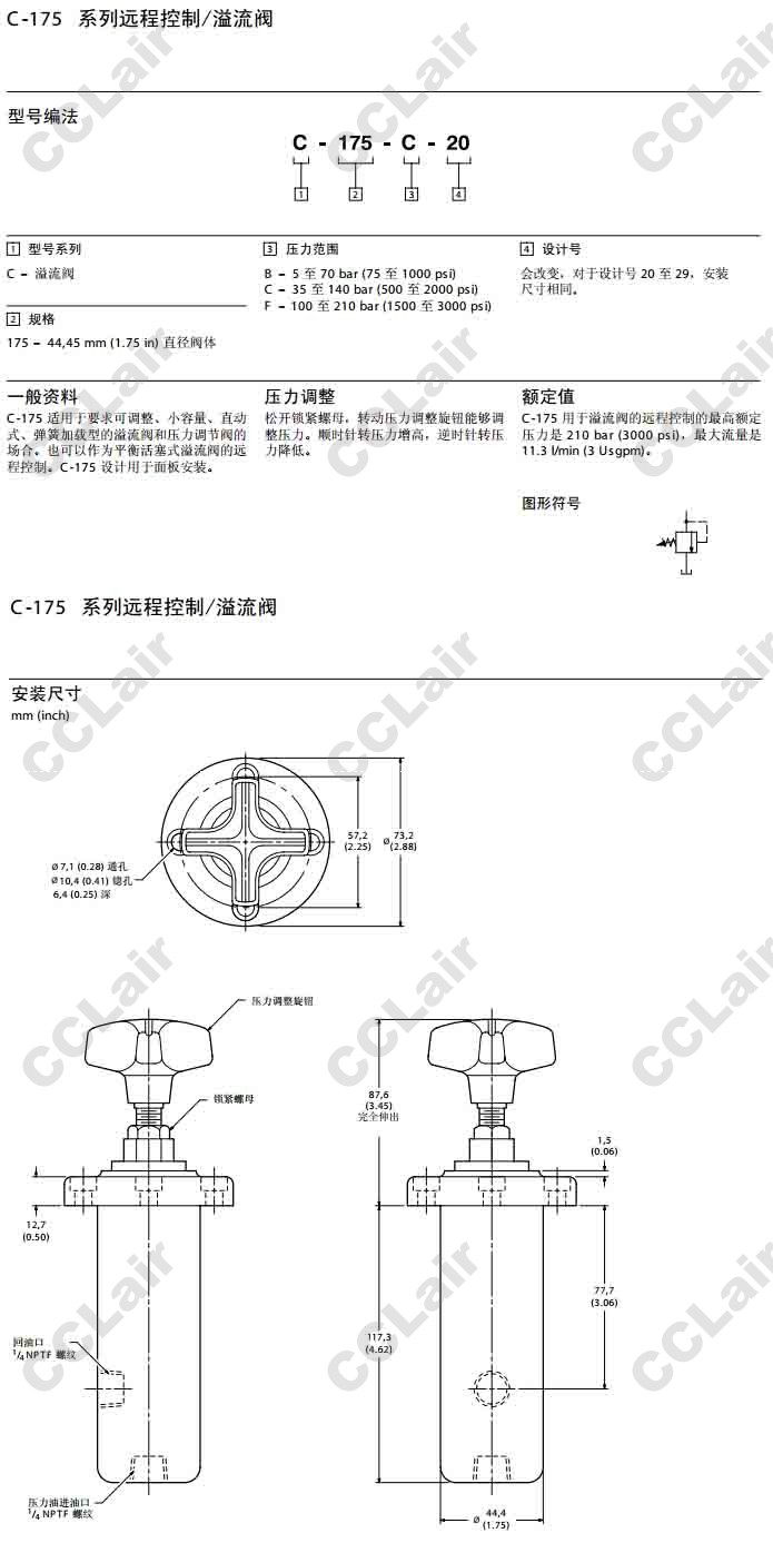 詳細(xì)信息 C-175-B-20,C-175-B-20,C-175-C-20,C-175-F-20,溢流閥,威格士-Vickers