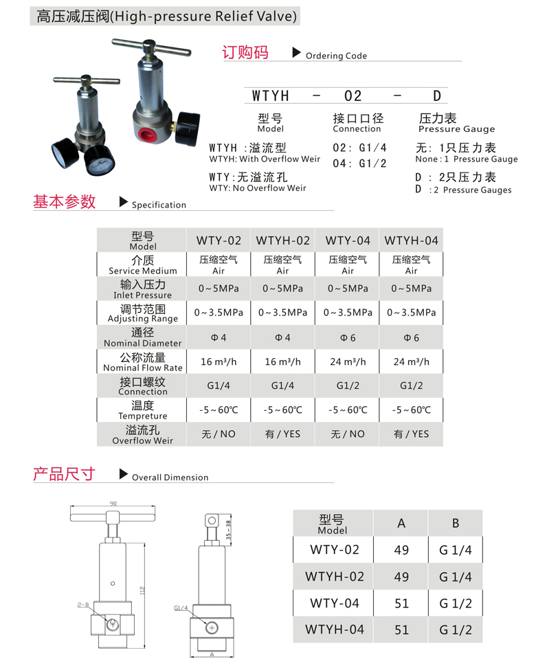 WTYH-02,WTYH-02-D,WTYH-04,WTYH-04-D,WTY-02,WTY-02-D,WTY-04,WTY-04-D,高壓調(diào)壓閥