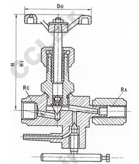 四、CJ123H型針型閥主要外形及連接尺寸: