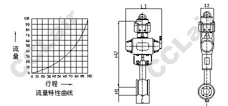 ■ V形球閥芯上具有近似等百分比流量特性的V形和具有近似線性流量特性的U形二種缺口形式,因而無須通過定位器調(diào)整,即能實現(xiàn)不同流量特性的流量控制。