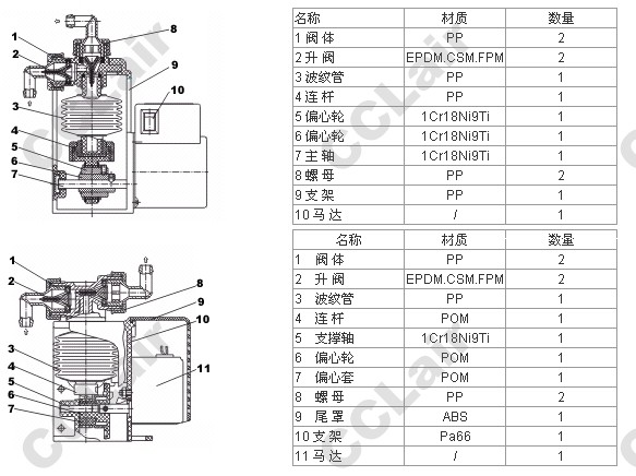 耐腐性能好……泵體采用聚丙烯制成,閥門(mén)選用了特種配方的FPM、EPDM,耐各種酸、堿等腐蝕性液體。
