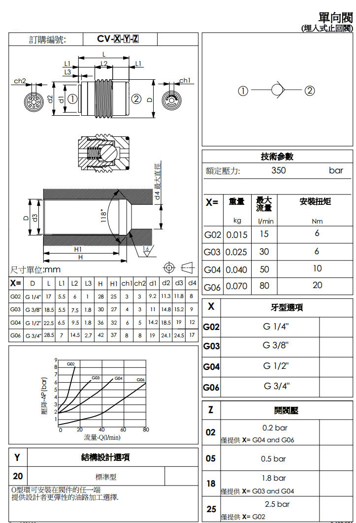 詳細(xì)信息 CV-G02-20-02,CV-G03-20-05,CV-G04-20-18,CV-G06-20-25,CV-G03-20-02,winner單向閥