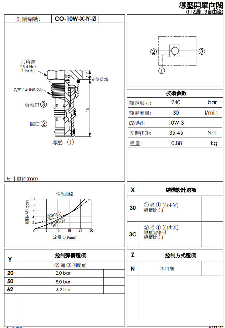 CO-10W-30-20-N,CO-10W-30-50-N,CO-10W-30-62-N,CO-10W-3C-20-N,winner單向閥
