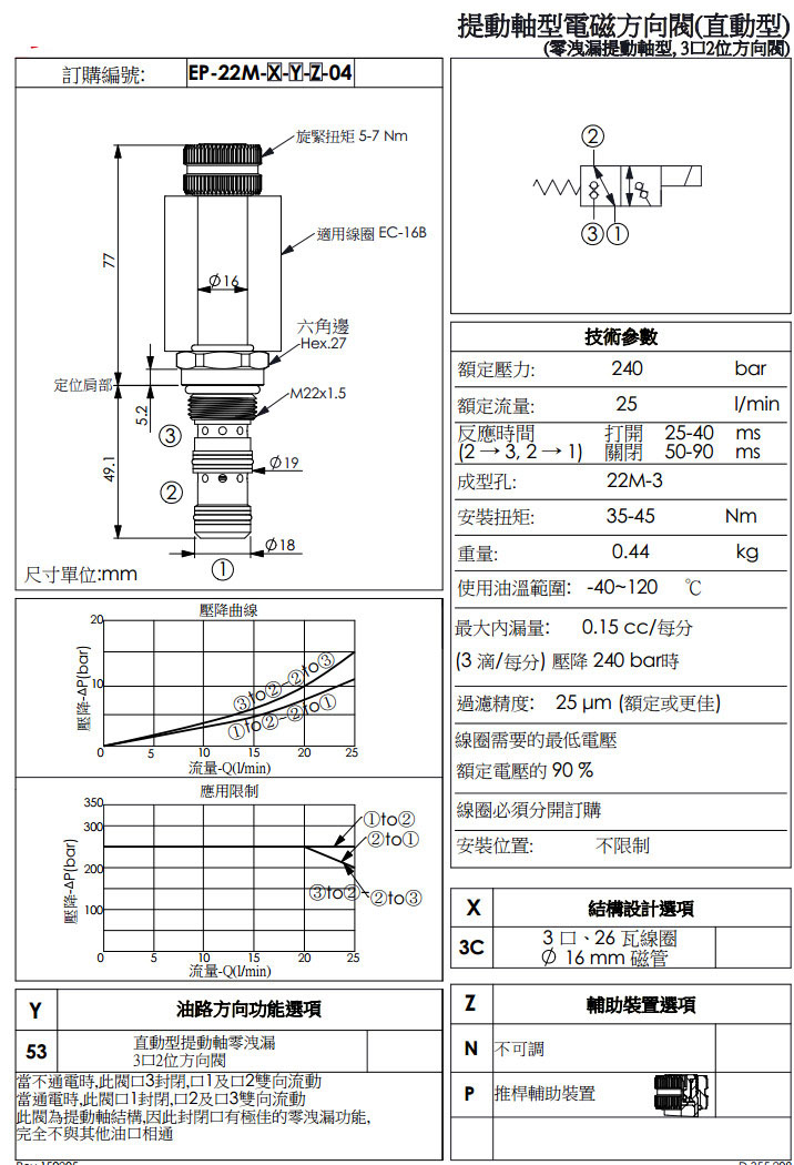 詳細信息 EP-22M-3C-53-N,EP-22M-3C-53-P,winner提動軸型電磁方向閥