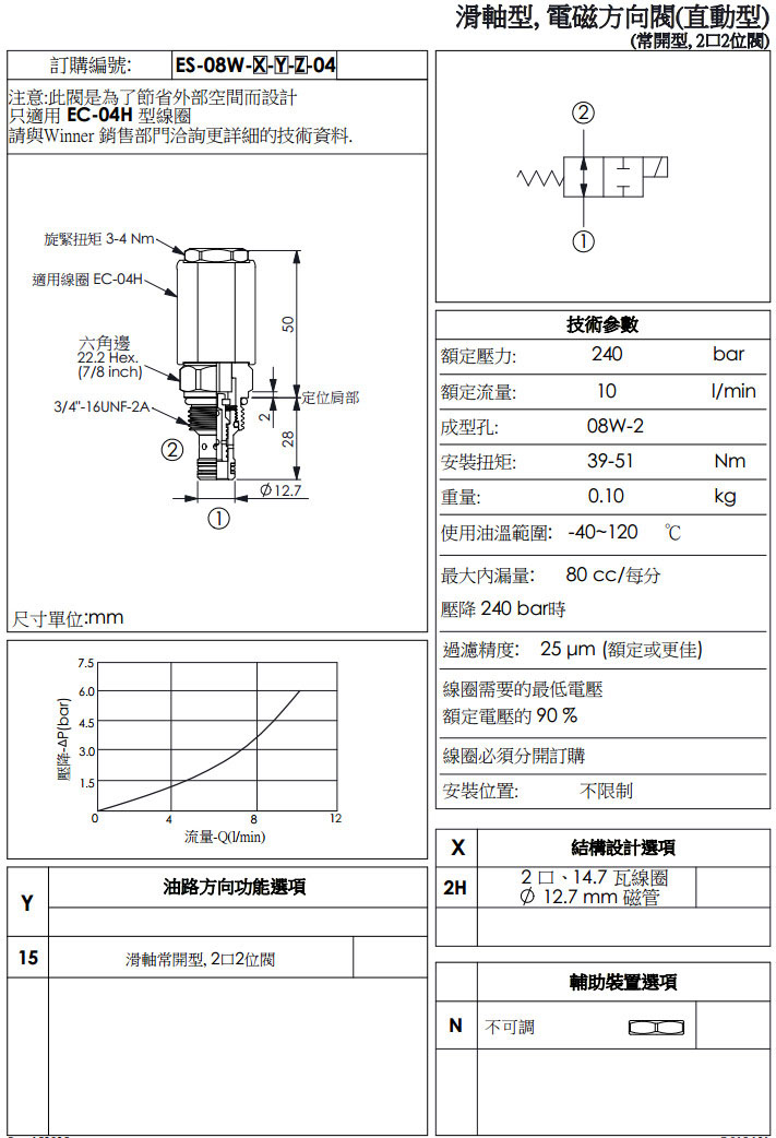 詳細信息 ES-08W-2H-14-N-04,ES-08W-2H-15-N-04,winner滑軸型電磁方向閥