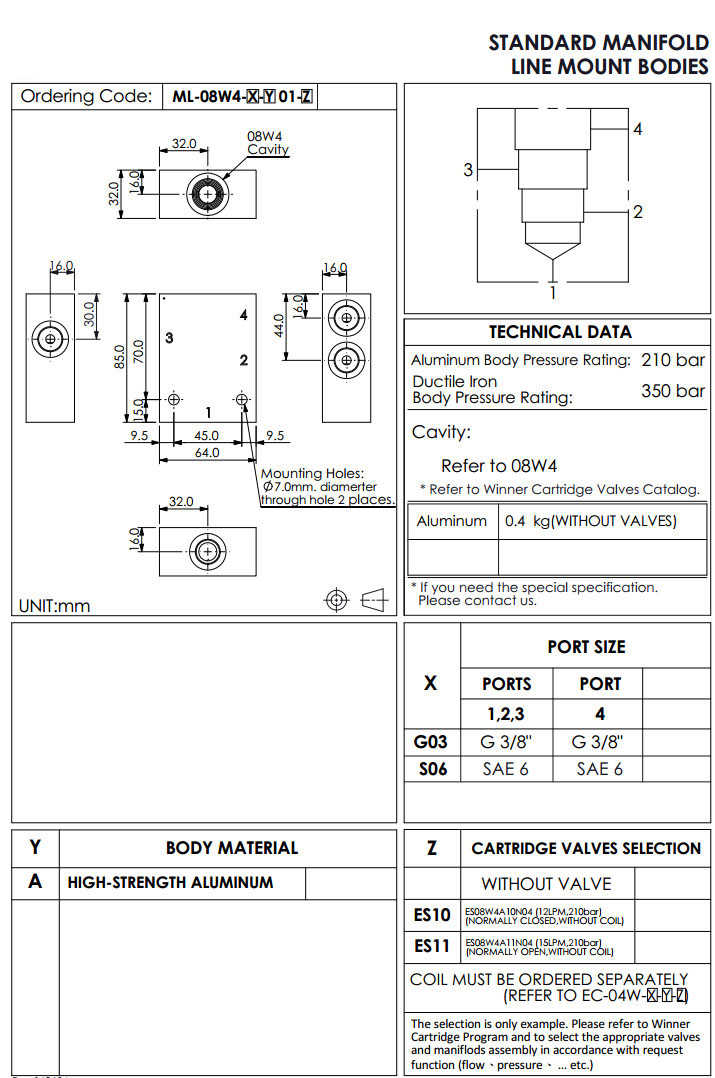 型號(hào): ML-08W4-G03-A01-ES10,ML-08W4-S06-A01-ES10,ML-08W4-G03-A01-ES11,ML-08W4-S06-A01-ES11,winner標(biāo)準(zhǔn)配管式油路板