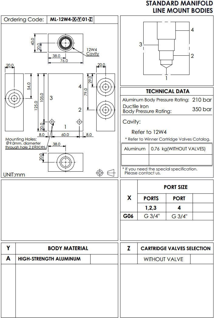 詳細(xì)信息 ML-12W4-G06-A01,winner標(biāo)準(zhǔn)配管式油路板