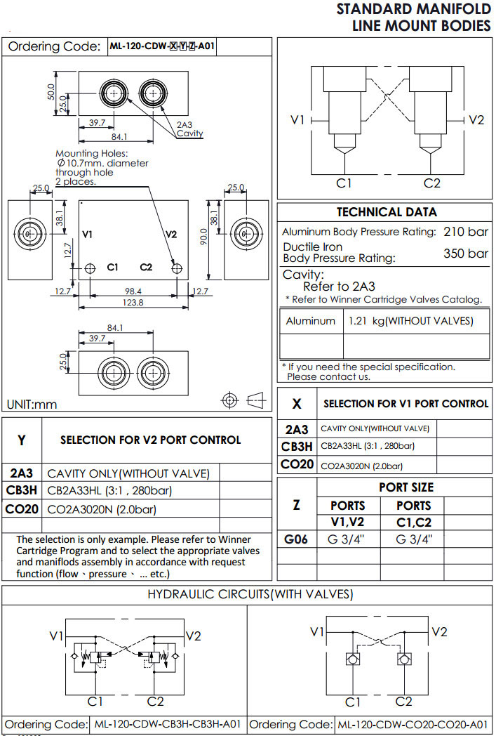 詳細(xì)信息 ML-120-CDW-2A3-2A3-G06-A01,ML-120-CDW-CB3H-CB3H-G06-A01,ML-120-CDW-CO20-CO20-G06-A01,winner標(biāo)準(zhǔn)配管式油路板