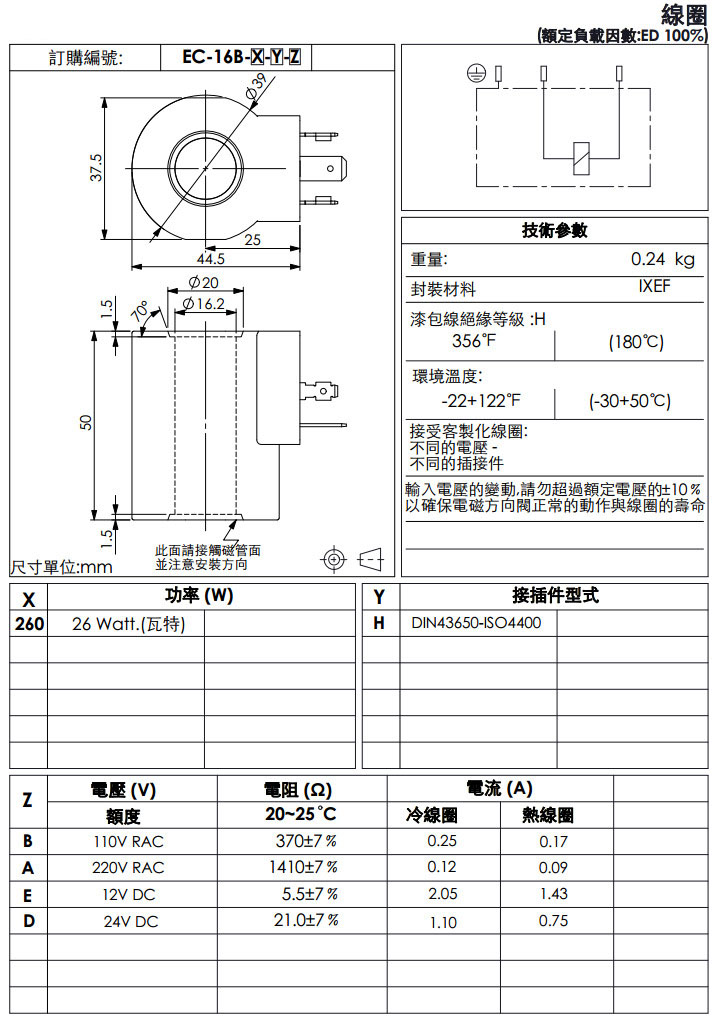 詳細信息 EC-16B-260-H-B,EC-16B-260-H-A,EC-16B-260-H-E,EC-16B-260-H-D,winner線圈