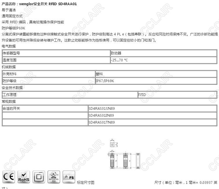 詳細信息 SD4RAA01,wenglor安全開關(guān)RFID