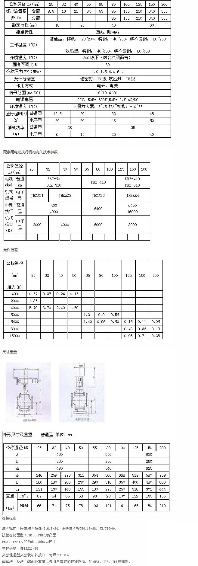 本系列產(chǎn)品口徑由25mm至200mm,公稱壓力有1.0、1.6、4.0、6.4MPa,溫度范圍-60℃至450℃,控制信號為0~10或4~20mA.DC。配用不同的執(zhí)行機構(gòu)可分為普通型和電子型兩種。