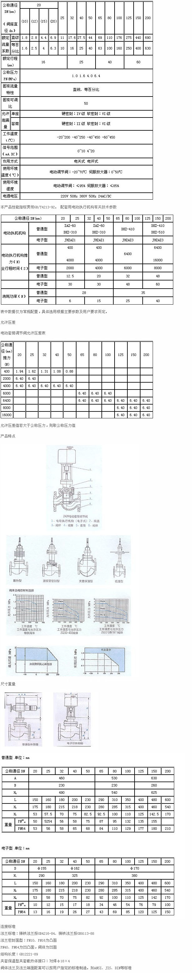 本系列產(chǎn)品公稱通徑由20至200mm,公稱壓力有1.0、1.6、4.0、6.4MPa,使用溫度范圍由-40℃~450℃,接受信號為0~10mA.DC或4~20mA.DC。其中電動單座調(diào)節(jié)閥適用于壓差較小,介質(zhì)粘度較大或稍有顆粒雜質(zhì)場合。電動套筒調(diào)節(jié)閥適用于壓差較大場合。按閥內(nèi)件密封部分材質(zhì)分又有金屬-金屬和非金屬-金屬密封兩種,后者閥關(guān)閉時泄漏量可達VI級(零泄漏)標準。按填料不同可分為一般填料密封和波紋管密封兩種,前者用一般場合,而后者用至不允許外漏的重要場合。流量特性為線性或等百分比。配用不同的執(zhí)行機構(gòu)可分為普通型和電子型兩種。多種多樣的品種規(guī)模可供選擇。