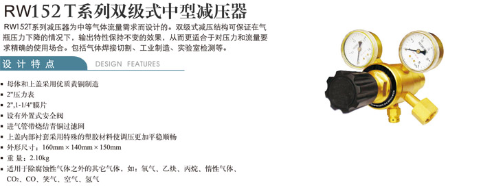 產(chǎn)品: 瀏覽次數(shù):472RW152T,雙級式中型減壓器