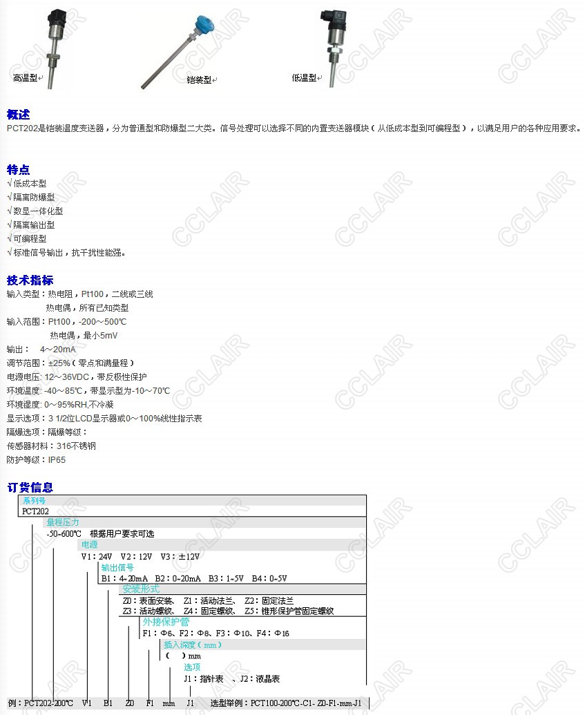 瀏覽次數(shù):452PCT202,鎧裝溫度變送器 |