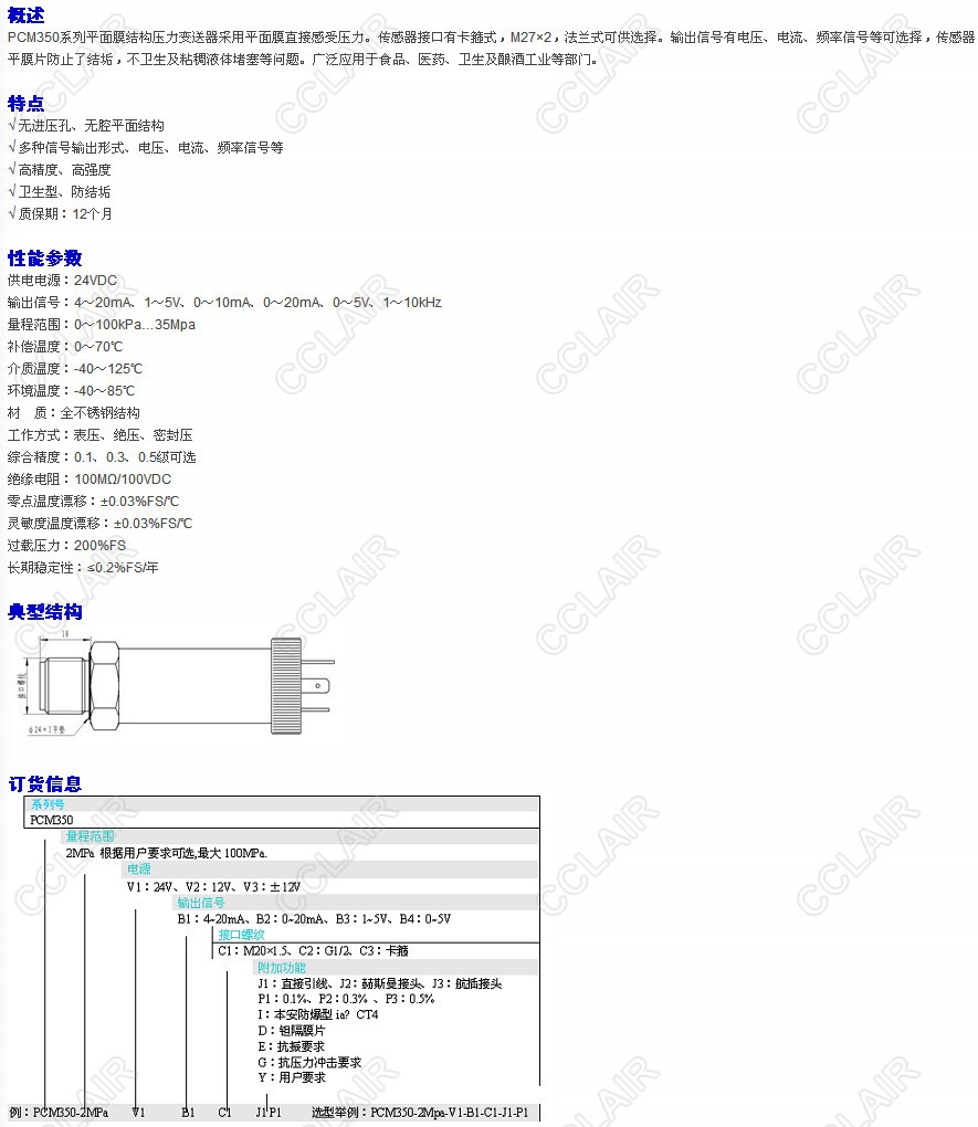PCM350-2MPa-V1-B1-C1,PCM350-2MPa-V2-B1-C1,PCM350-2MPa-V3-B1-C1,PCM350型衛(wèi)生壓力變送器