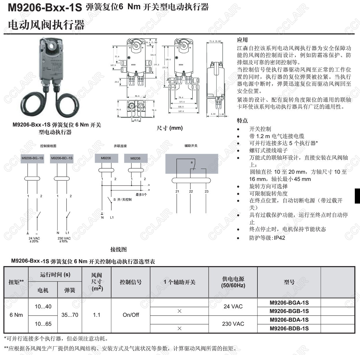 M9206-BGA-1S,M9206-BGB-1S,M9206-BDA-1S,M9206-BDB-1S,M9206-Bxx-1S,電動風(fēng)閥執(zhí)行器