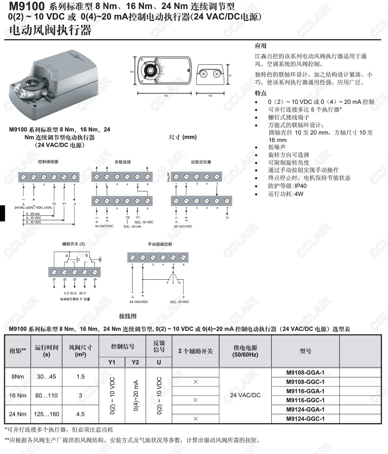 M9108-GGA-1,M9108-GGC-1,M9116-GGA-1,M9116-GGC-1,M9100,標(biāo)準(zhǔn)型8/16/24Nm連續(xù)調(diào)節(jié)控制電動執(zhí)行器