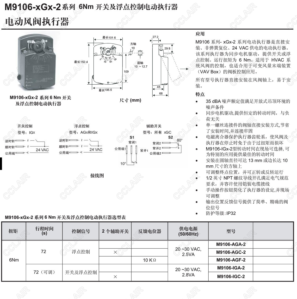 M9106-AGA-2,M9106-AGC-2,M9106-AGF-2,M9106-IGA-2,M9106-IGC-2,M9106-xGx-2,電動(dòng)風(fēng)閥執(zhí)行器