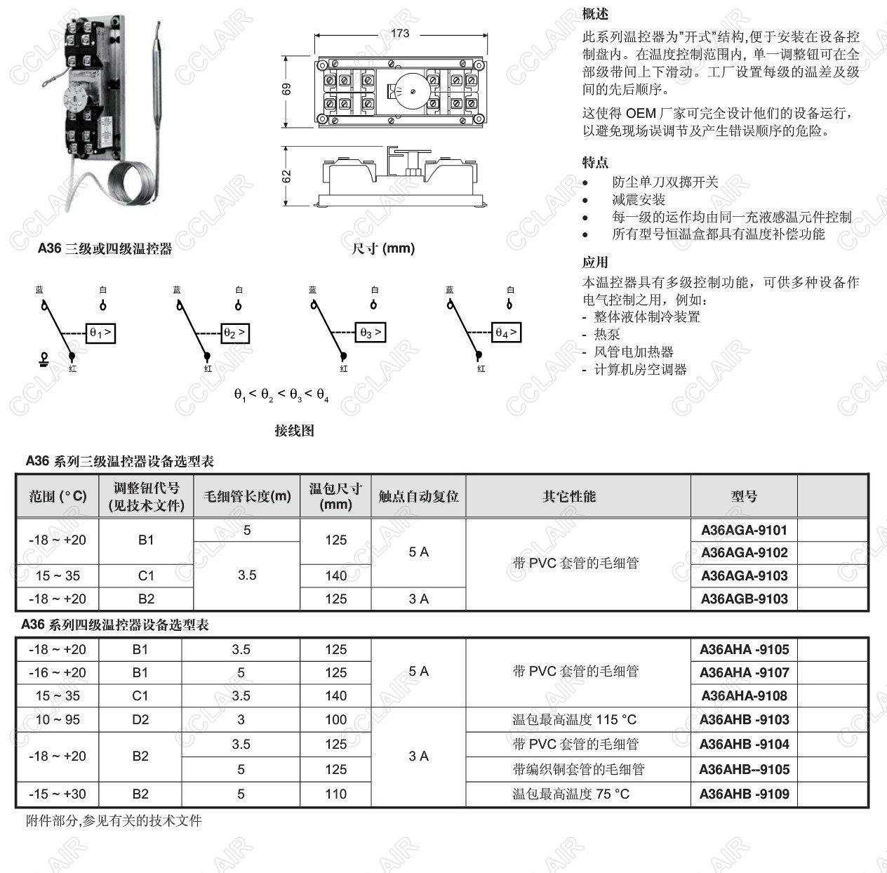 詳細(xì)信息 A36AGA-9101,A36AGA-9102,A36AGA-9103,A36AGB-9103,A36AHA-9105,A36,三級(jí)及四級(jí)溫控器
