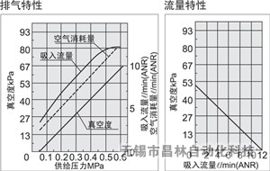 排氣特性/流量特性圖標(biāo)(供給壓力在0.45MPa的情況下)