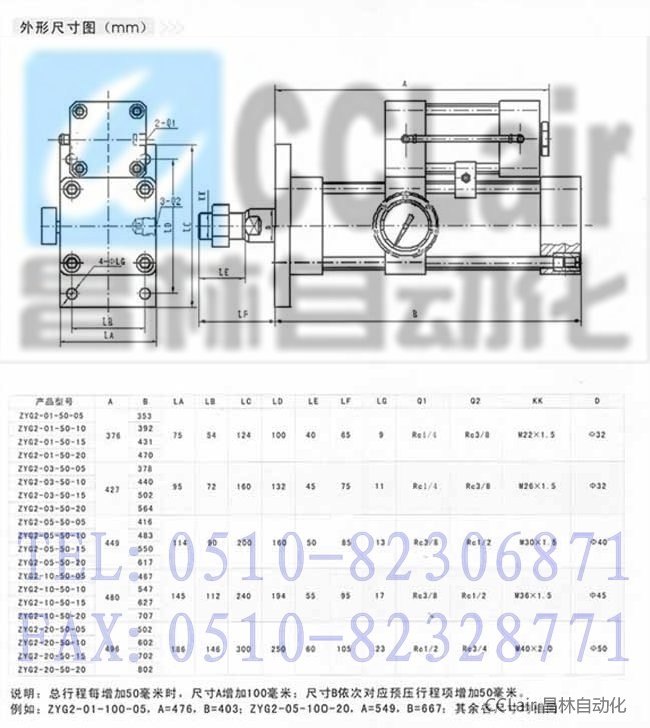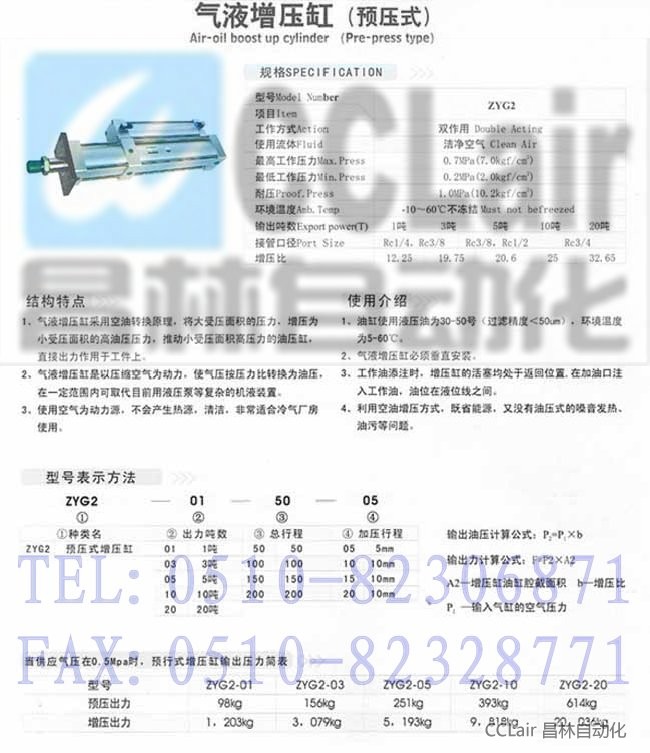 ZYG2-01,ZYG2-03,ZYG2-05,ZYG2-10,ZYG2-20,ZYG2-01-50-05,氣液增壓缸
