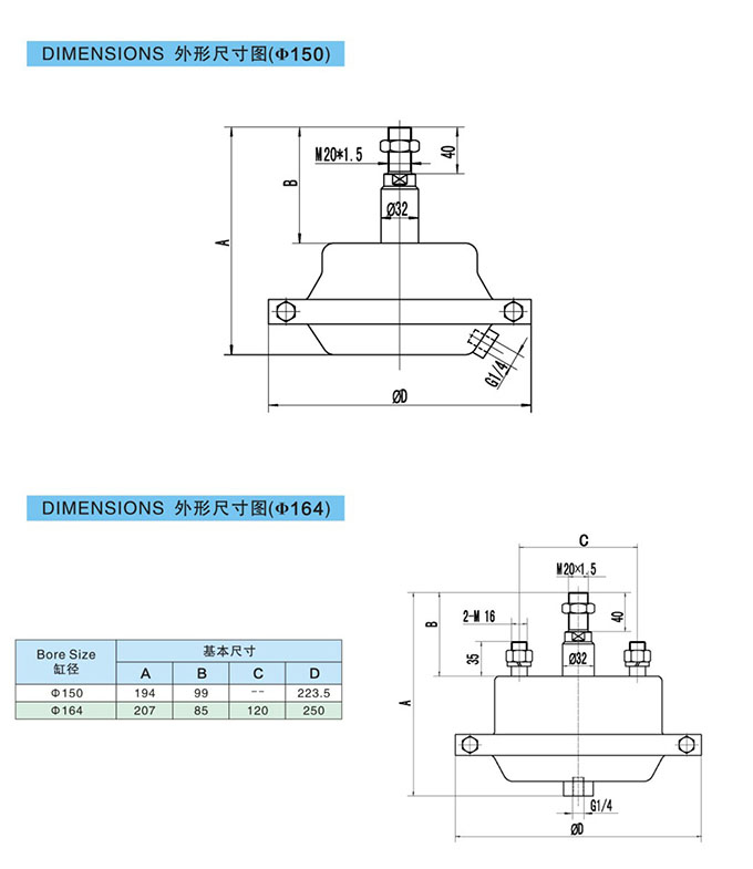 QGBM-150-33,QGBM-164-44,QGBM-150-44,QGBM-164-33,膜片氣缸
