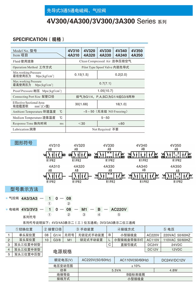4A310-10,4A320-10,4A330-10,4A340-10,4A350-10,4A310-08,4A320-08,先導(dǎo)式3通5通氣控閥
