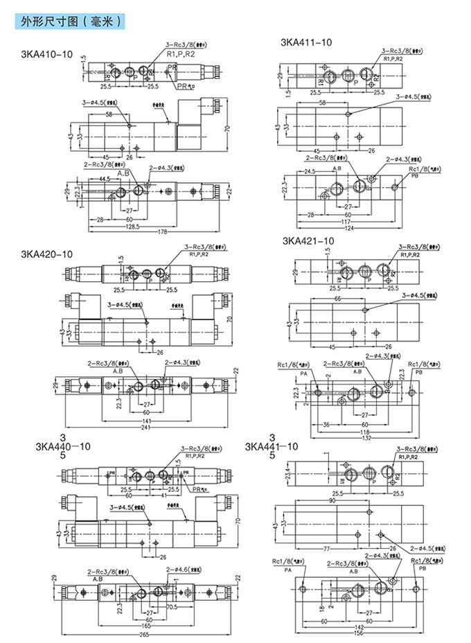 3KA410-10,3KA420-10,3KA430-10,3KA440-10,3KA450-10,3KA410-10-B,先導(dǎo)式5通電磁閥
