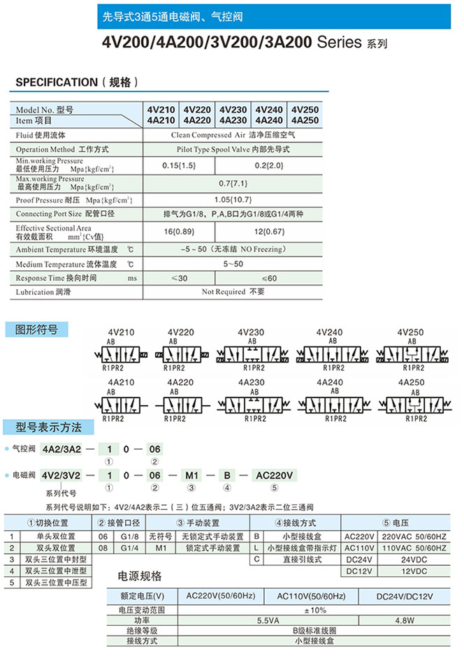 4A230-08,4A240-08,4A250-08,3A210-06,3A220-06,3A230-06,3A240-06,先導(dǎo)式3通5通氣控閥