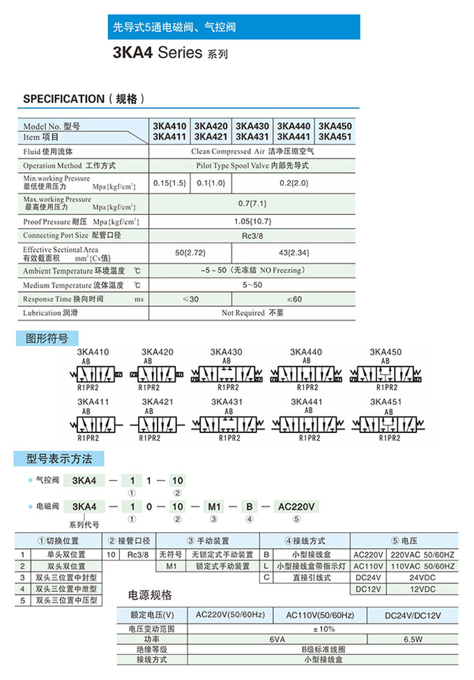 詳細(xì)信息 3KA411-10,3KA421-10,3KA431-10,3KA441-10,3KA451-10,先導(dǎo)式5通氣控閥