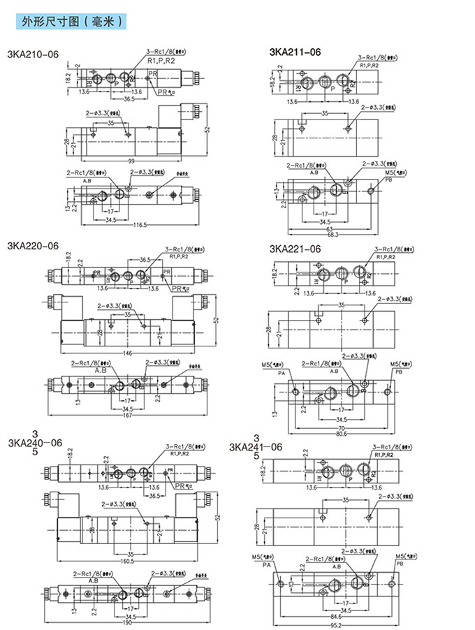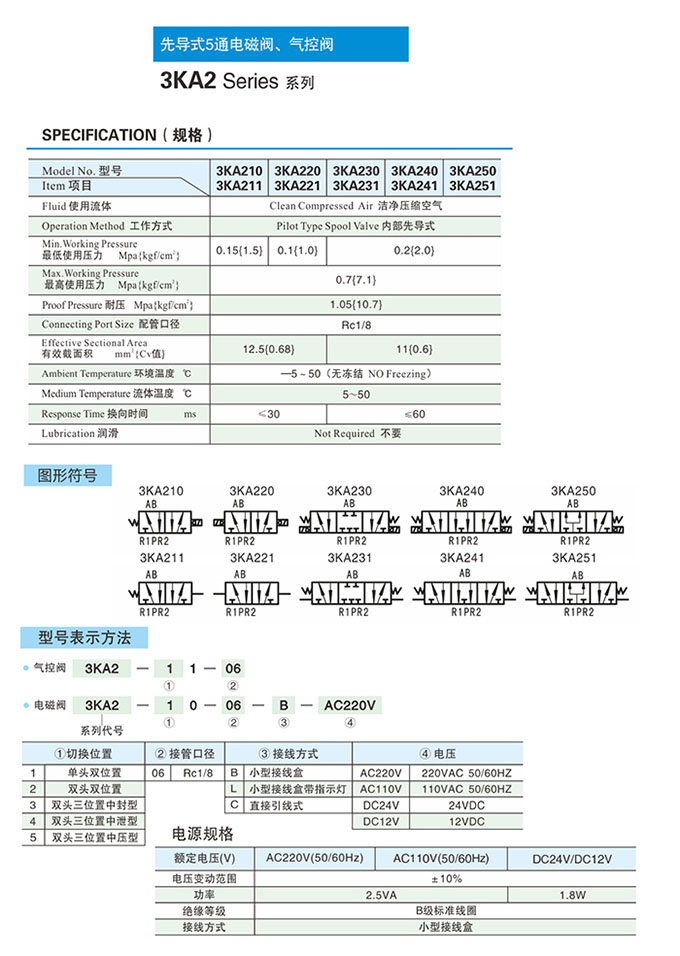 3KA210-06,3KA220-06,3KA230-06,3KA240-06,3KA250-06,3KA210-06-B,先導式五通電磁閥
