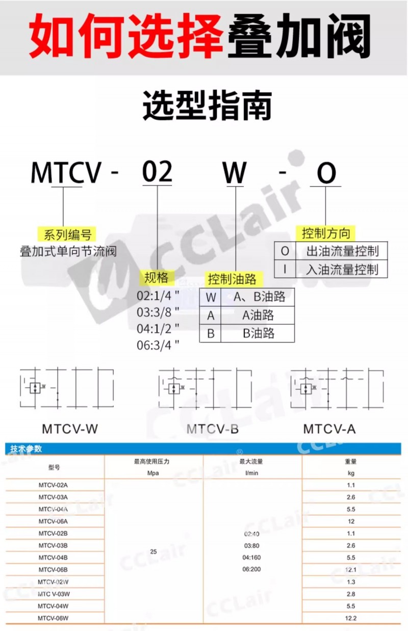 MTCV-02W-X,MTCV-02A-X,MTCV-02B-X,MTCV-02W-Y,疊加式單向節(jié)流閥
