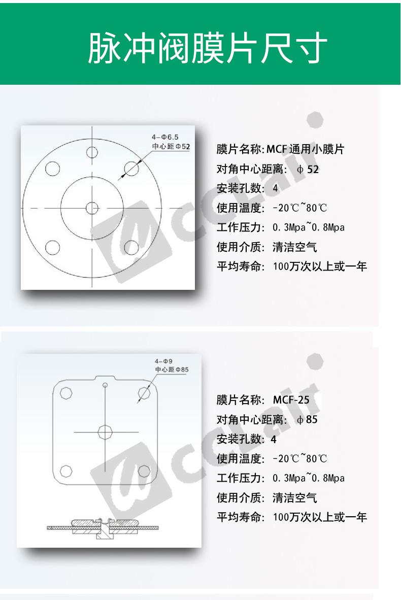 MCF-25 膜片,MCF-35 膜片,MCF-40 大膜片,脈沖閥附件