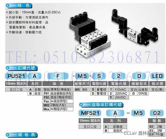 PU521A-M5-S,PU521A-M5-D,PU521B-M5-S,PU521B-M5-D,引導(dǎo)式電磁閥