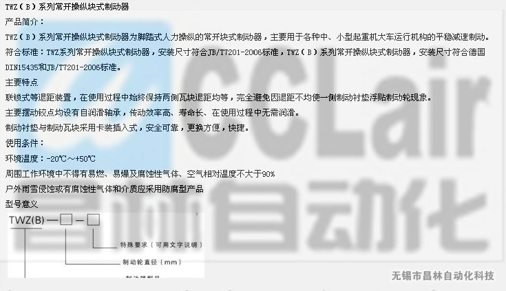 TWZ-200,TWZB-200,TWZ-300,TWZB-310,液壓腳踏式制動器