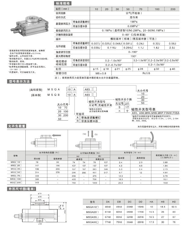 擺臺氣缸 MSQA-10A,MSQA-20A,MSQA-30A,MSQA-50A,MSQA-10R,MSQA-20R,MSQA-30R,MSQA-50R, MSQA-10A-S,MSQA-20A-S,MSQA-30A-S,MSQA-50A-S,MSQA-10R-S,MSQA-20R-S,MSQA-30R-S, MSQA-50R-S, MSQA-10L3,MSQA-20L3,MSQA-30L3,MSQA-50L3,MSQA-70L3,MSQA-100L3,MSQA-200L3