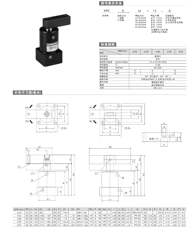 氣立可型夾緊缸 SRC25-90L,SRC25-90R,SRC32-90L,SRC32-90R,SRC40-90L,SRC40-90R,SRC50-90L,SRC50-90R, SRC63-90L,SRC63-90R,SRC25-90R-D,SRC25-90L-D,SRC32-90L-D,SRC32-90R-D,SRC40-90L-D