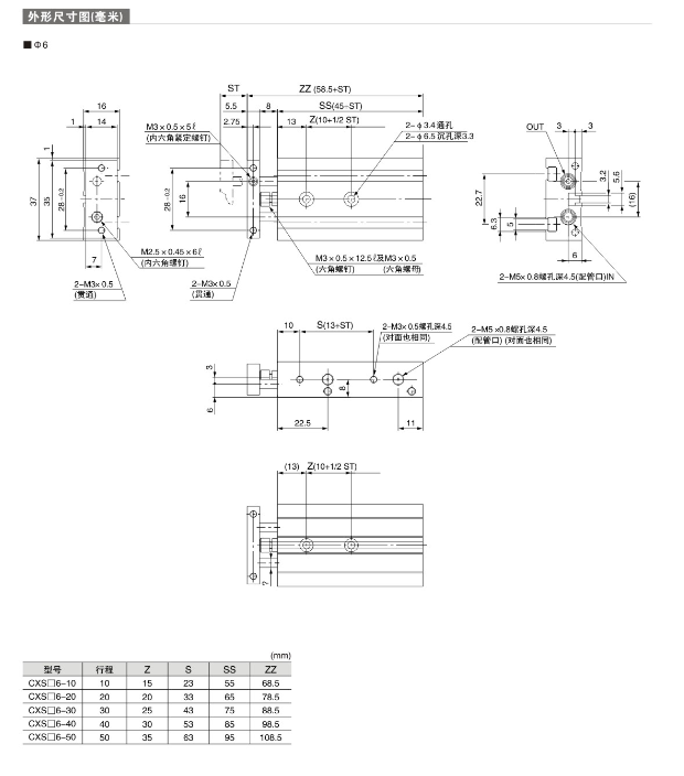 雙桿氣缸 CXSM6-10,CXSM6-15,CXSM6-20,CXSM6-25,CXSM6-30,CXSM6-35,CXSM6-40,CXSM6-45,CXSM6-50, CXSM10-10,CXSM10-15,CXSM10-20,CXSM10-25,CXSM10-30,CXSM10-35,CXSM10-40,CXSM10-45
