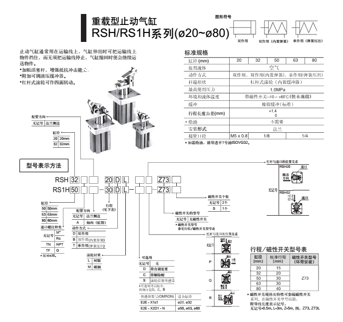 重載型止動氣缸 RSH20-10TL,RSH20-20TL,RSH20-30TL,RSH20-40TL,RSH20-50TL,RSH25-10TL, RSH25-20TL,RSH25-30TL,RSH25-40TL,RSH25-50TL,RSH32-10TL,RSH32-20TL,RSH32-30TL, RSH32-40TL,RSH32-50TL,RSH40-10TL,RSH40-20TL,RSH40-30TL,RSH40-40TL,RSH40-50TL