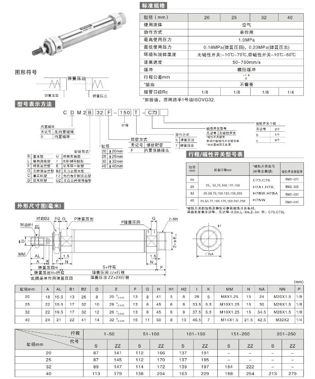 迷你氣缸 CM2BDB20-25,CM2BDB20-50,CM2BDB20-75,CM2BDB20-100,CM2BDB20-125,CM2BDB20-150, CM2BDB20-175,CM2BDB20-200,CM2BDB20-250,CM2BDB20-300,CM2BDB25-25,CM2BDB25-50