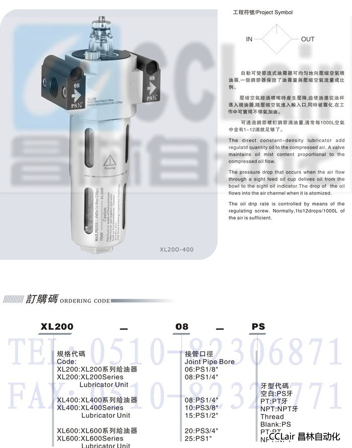 XL200-06,XL200-08,XL400-08,XL400-10,XL400-15,XL600-20,XL600-25,給油器