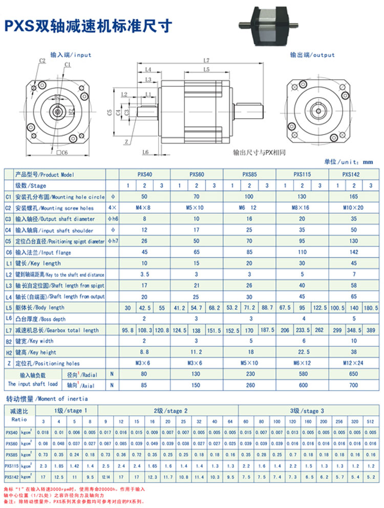 詳細(xì)信息 PXS40,PXS60,PXS85,PXS115,PXS142,PXS190,PXS240,PXS285,PXS330,PXS400,雙軸減速機(jī)