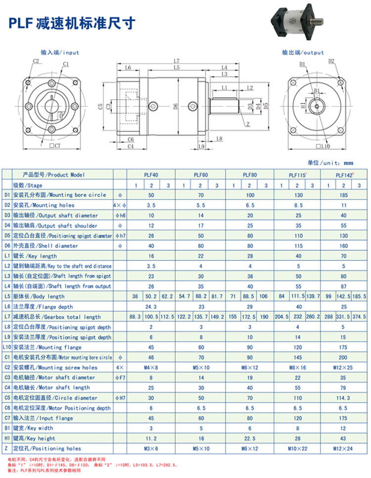 詳細信息 PLF40,PLF60,PLF80,PLF115,PLF142,伺服減速機