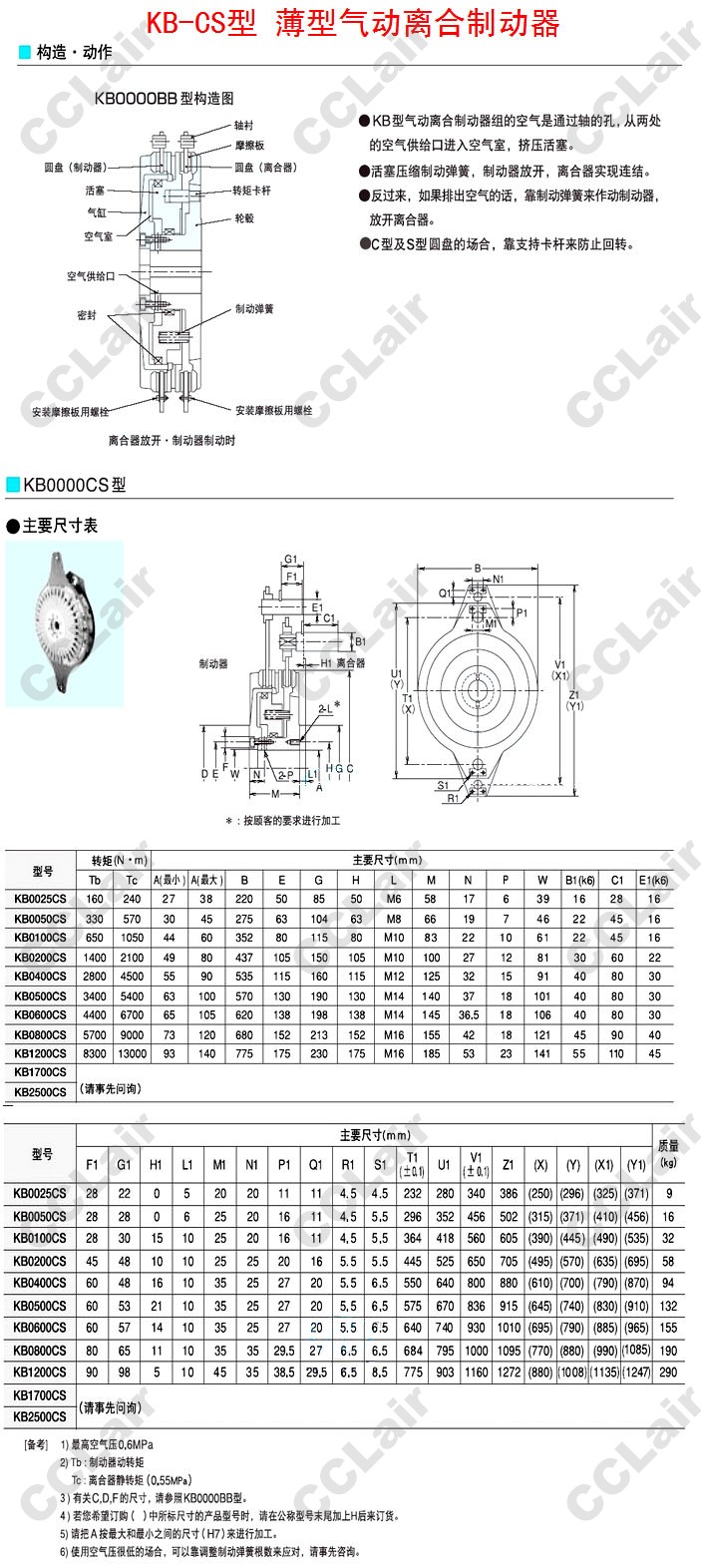 KB0025CS,KB0050CS,KB0100CS,KB0200CS,KB0400CS,KB0500CS,KB0600CS,KB0800CS,KB2500CS,薄型氣動離合制動器