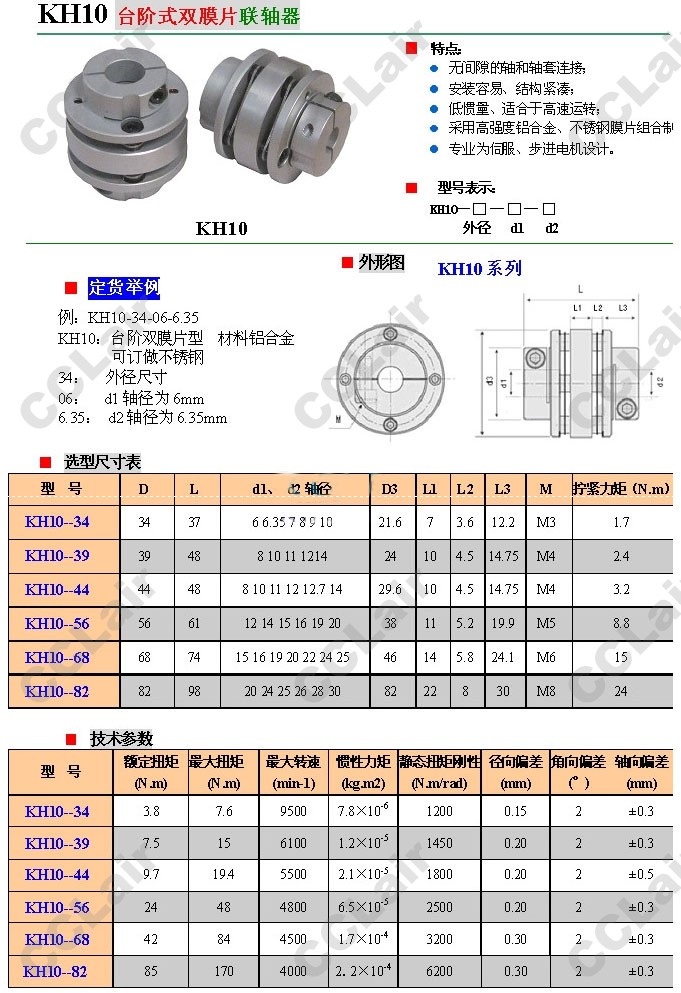 詳細(xì)信息 KH10-34,KH10-39,KH10-44,KH10-56,KH10-68,KH10-82,法蘭式雙膜片聯(lián)軸器